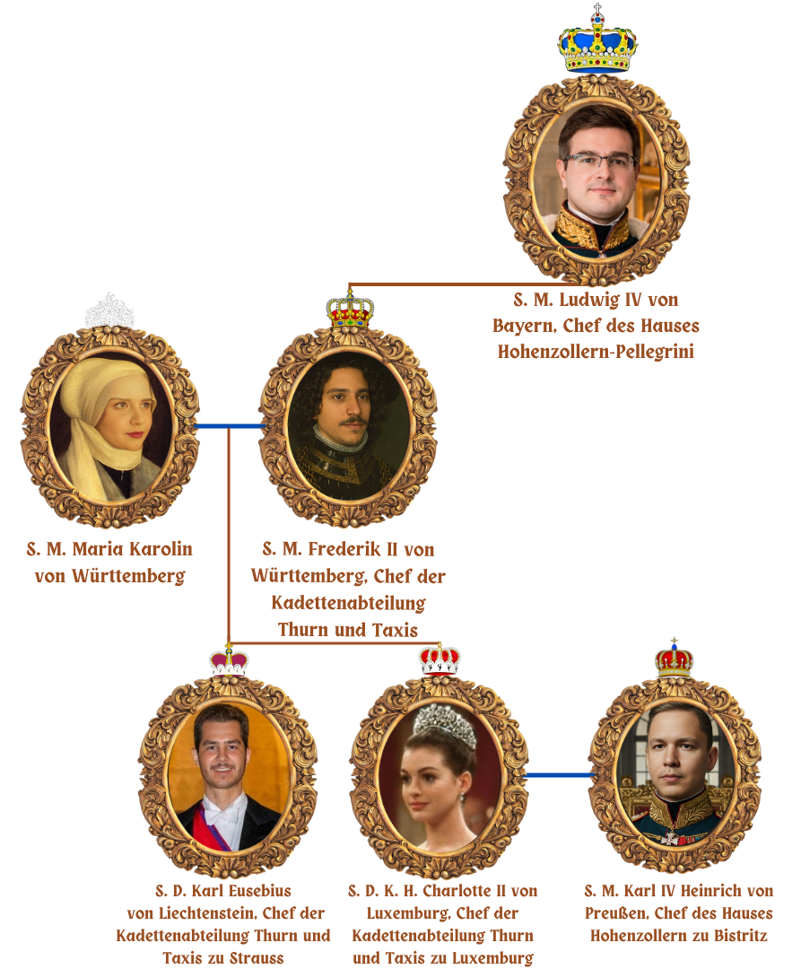 O ramo de Thurn e Taxis, chefiado por Filipe Frederico, primogênito de Sua Bávara Majestade, foi estabelecido com a criação do Principado de Thurn e Taxis. Filipe Frederico também é Rei de Württemberg.