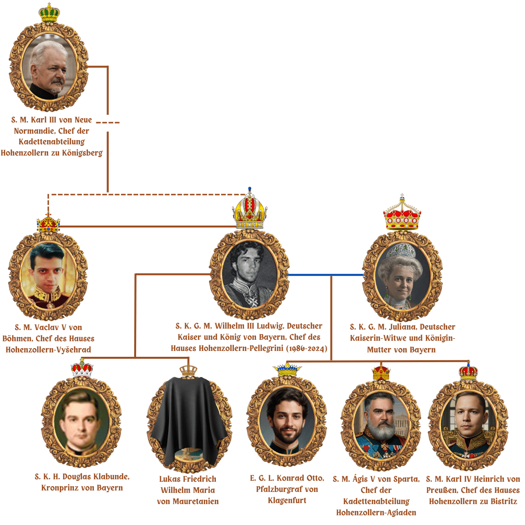 A chefia da Casa de Hohenzollern-Pellegrini passou então ao primogênito do saudoso Imperador, Sua Majestade, Luís IV, Rei da Baviera.